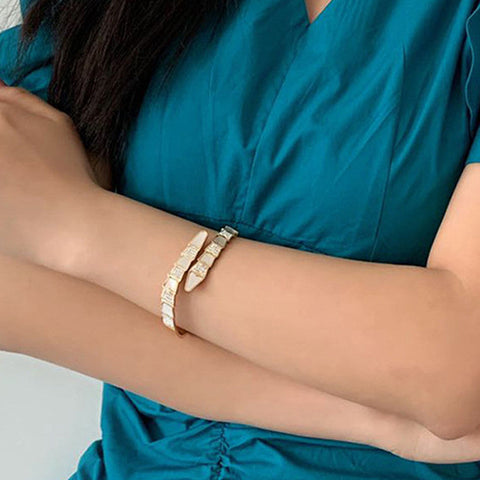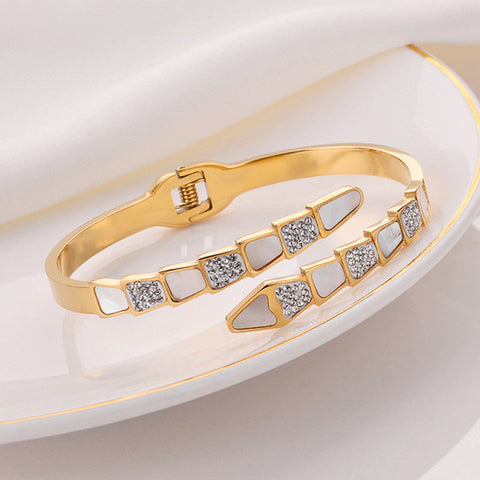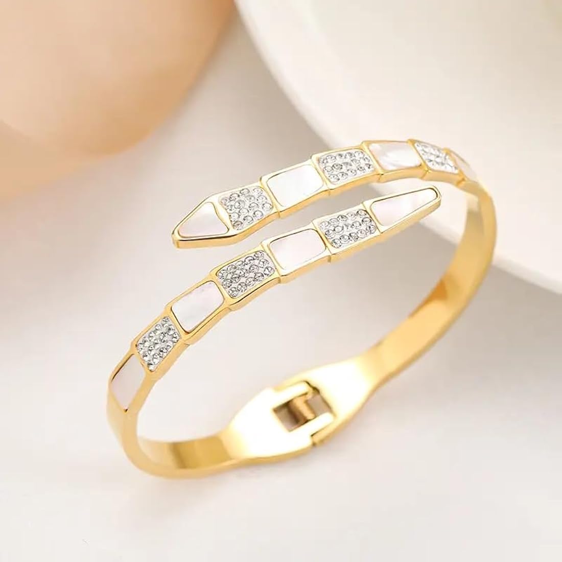 Gold Plated Mother of Pearl Snake Styled AD Studded Anti-Tarnish Bracelet for Women Sale