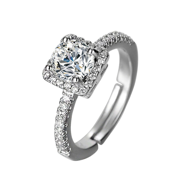 Showcase modern sophistication with this Square Shape Solitaire Adjustable Finger Ring, featuring a dazzling central crystal surrounded by shimmering accents. The bold geometric square design adds a contemporary touch to any look, while the anti-tarnish coating ensures it retains its brilliance over time. With its adjustable fit, this piece offers both style and comfort for daily elegance or special events.